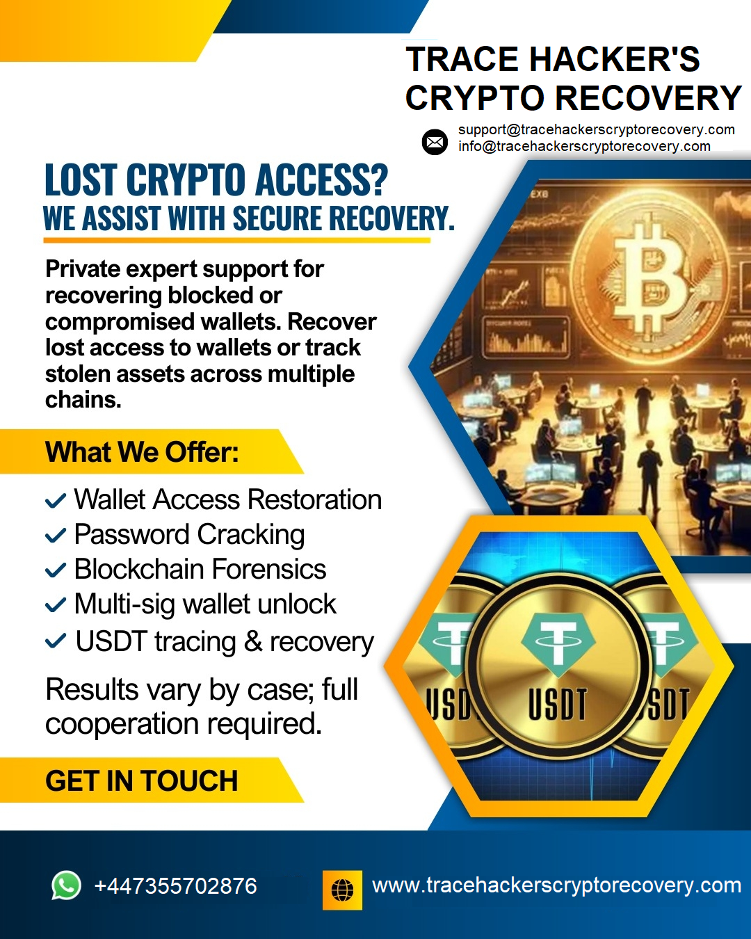 RECOVERY YOUR STOLEN CRYPTO / BTC / USDT / ETH WITH THE HELP OF TRACE HACKER’S CRYPTO RECOVERY +447355702876 I’m truly grateful for the service of TRACE HACKER’S CRYPTO RECOVERY. I never would have imagined that I could recover my ...